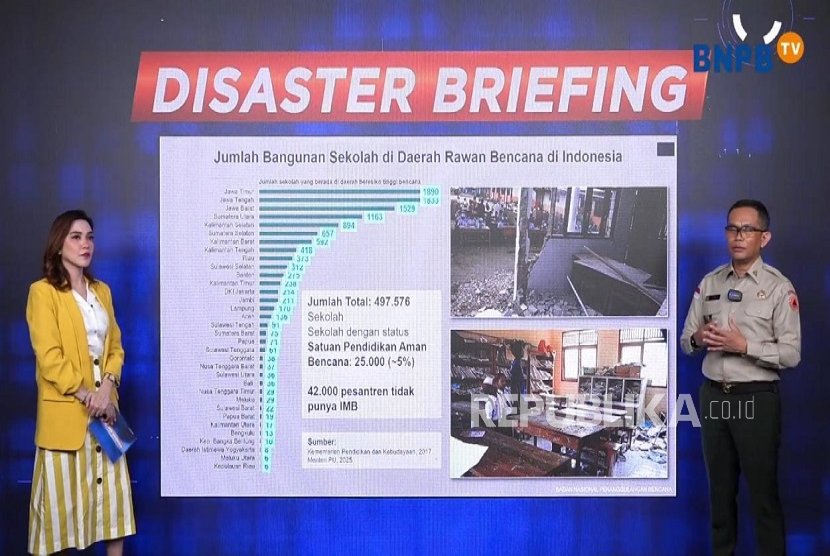 REPUBLIKA.CO.ID, YOGYAKARTA — Pascatragedi ambruknya bangunan mushala Pondok Pesantren Al Khoziny, Sidoarjo, Jawa Timur akhir September 2025, Badan Nasional Penanggulangan Bencana (BNPB) mengungkapkan fakta mengejutkan. Kepala Pusat Data, Informasi, dan Komunikasi Kebencanaan BNPB, Abdul Muhari menyebut hanya sekitar 5 persen bangunan sekolah yang masuk kategori Satuan Pendidikan Aman Bencana (SPAB) dari total hampir 500 ribu bangunan pendidikan di Indonesia.