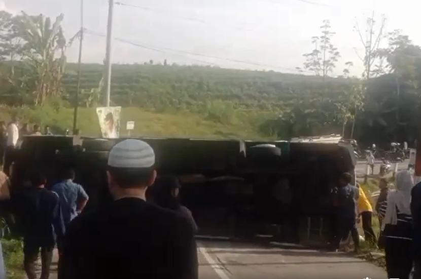 Bus bernomor polisi B 7201 IV yang berangkat dari Jatiasih, Jakarta, menuju Yogyakarta itu dilaporkan melaju kencang dan diduga hilang kendali hingga menabrak pembatas jalan, lalu terguling.