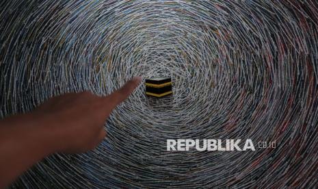 Pengunjung mengamati karya yang dipajang pada Pameran Seni Rupa Jakarta Artmospher 2025 di Tebet Eco Park, Jakarta, Senin (20/10/2025). Pameran tersebut diikuti oleh puluhan seniman dari Jakarta dan Jogjakarta yang menghadirkan produk seni dan budaya di ruang publik dengan harapan menjadi ruang interaksi warga dalam berkesenian. (FOTO : Republika/Thoudy Badai)