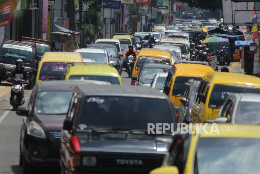 Kepadatan lalu lintas di Grand Hotel, Lembang, Kabupaten Bandung Barat, Ahad (28/12/2025). Tingginya pengunjung saat musim liburan Natal dan Tahun Baru (Nataru) di Bandung, membuat jalan khususnya menuju lokasi wisata padat dan macet.