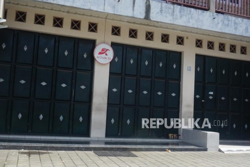 Akses masuk ke halaman bangunan terhalang rantai besi, sementara seluruh pintu terlihat terkunci. Tidak tampak aktivitas karyawan maupun lalu lalang orang di sekitar lokasi.