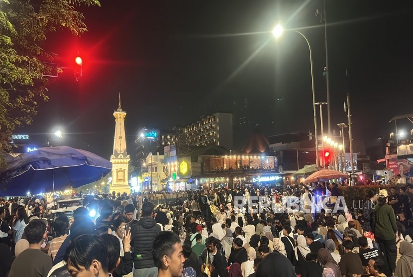 Pantauan Republika, ribuan pengunjung memenuhi ruang publik di tiga lokasi tersebut sejak sore hari. Mereka datang bersama keluarga, teman, hingga pasangan, duduk santai sambil berbincang, menikmati suasana kota, dan mengabadikan momen dengan latar Tugu Yogyakarta, lampu Malioboro, serta bangunan bersejarah di Titik Nol Kilometer.